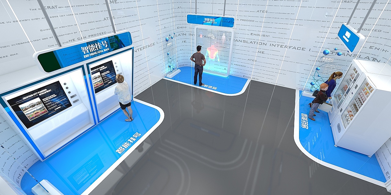 在色彩和造型设计上,智慧医疗展厅也应体现出科技感和未来感。整体色调可以采用科技蓝或白色等清新、明亮的色彩,营造出一种干净、宽阔的感觉。同时,在造型设计上,我们可以采用流线型、简约化的设计元素,增强空间的流动性和视觉冲击力。这些设计元素不仅能够提升展厅的整体美感,还能引导观众的视觉焦点,帮助他们更好地接收和理解展示内容。